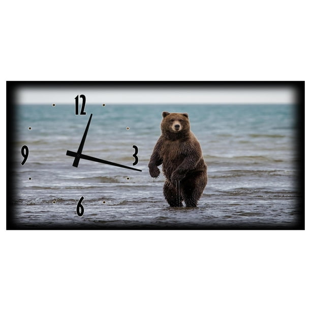 Large Wall Clock American Brown Bear In Alaska Lake Man Cave Garage 12 X 24 Inch Wall Art Wall Decor Walmart Com